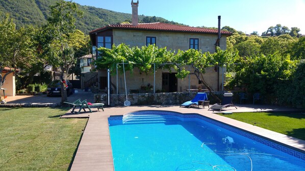 The large garden and courtyard offer plenty of space for families with children. There is a lawn with sun loungers and parasol and a private pool (8x4 m) with wonderful views of the mountains and valley. The garden can be cordoned off to protect children. In the courtyard is the summer kitchen, where you can cook on two gas burners or work with the large charcoal grill. This way, unpleasant smells stay away from the house.