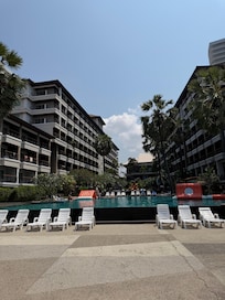 Was ok, good location on the beach, needs some maintenance and attention in parts. Bed comfortable, but hotel has seen better days. Strong air conditioning in room was good. Lots of noise from kids in pool in the morning.