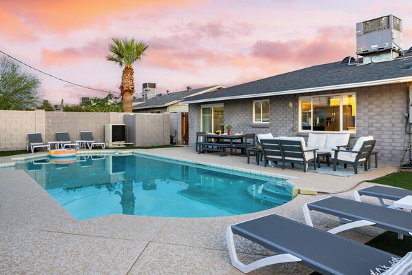 Relax in one of the spacious bedrooms, or head outside to your private backyard oasis with a sparkling pool, string lights, and multiple lounge areas ideal for soaking up the sun or enjoying sunset dinners. Located minutes from Old Town’s best shopping, dining, golf, and nightlife, this home is the perfect Scottsdale getaway for families, friends, or business travelers.
