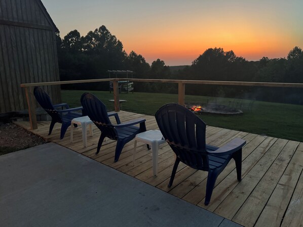 The Adventure Center rustic tiny cabin hot tub access stage stars sunsets & pets