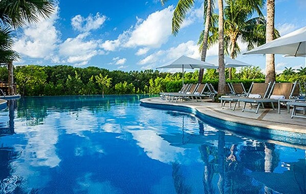 Hotel a peu de platja amb 19 restaurants, a prop de llocs d'interès com ara Platja de Maroma