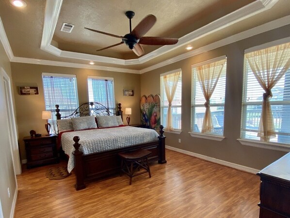 PRIMARY BEDROOM 1 (KING), BEDROOM 2 (2 FULLS), BEDROOM 3 (TWIN/TWIN BUNK WITH TWIN TRUNDLE, TWIN/FULL BUNK), EXTRA SLEEPING LIVING AREA (FULL SLEEPER SOFA). PRIMARY BATH (WALK-IN SHOWER), GUEST BATH (TUB/SHOWER).