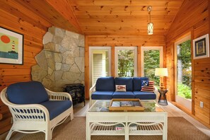 This gorgeous contemporary home boasts breathtaking views of Raymond Pond, offering 4 bedrooms and 3.5 bathrooms. The master suite on the main floor is complete with a large bedroom, full bathroom with a TV, and a private sitting room with another TV – perfect for a relaxing evening in. Even on a rainy day, there's plenty to do inside, with a home gym, library, office, and a full game room equipped with ping pong, foosball, darts, and a piano. The beautiful landscaping around the house leads to the shallow, sandy swimming access off the dock, which can hold up to a 20' boat. The owner also provides 2 kayaks and 4 paddle boards for you to explore the 346 acre pond. When you're not in the water, relax in one of the two lakeside hammocks or enjoy the views from the screened porch. In the evenings, unwind around one of the outdoor fire pits, complete with tons of outdoor seating, a propane fire pit, and a traditional wood-burning fire pit on the patio. Renters will also have access to the oversized garage with space for 2 cars. Located just a short drive away from recreational activities, restaurants, shops, and more, this is truly your home away from home!