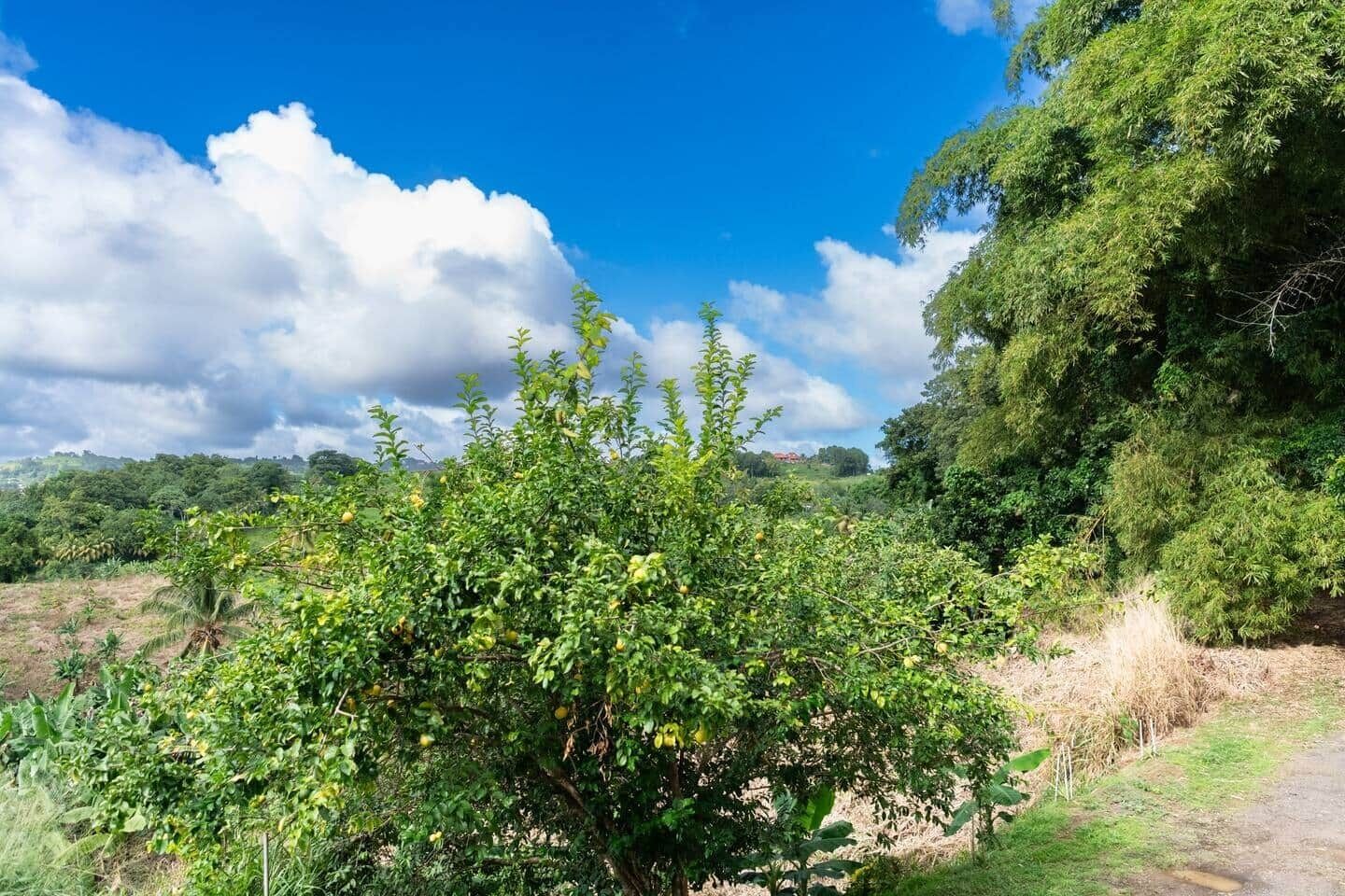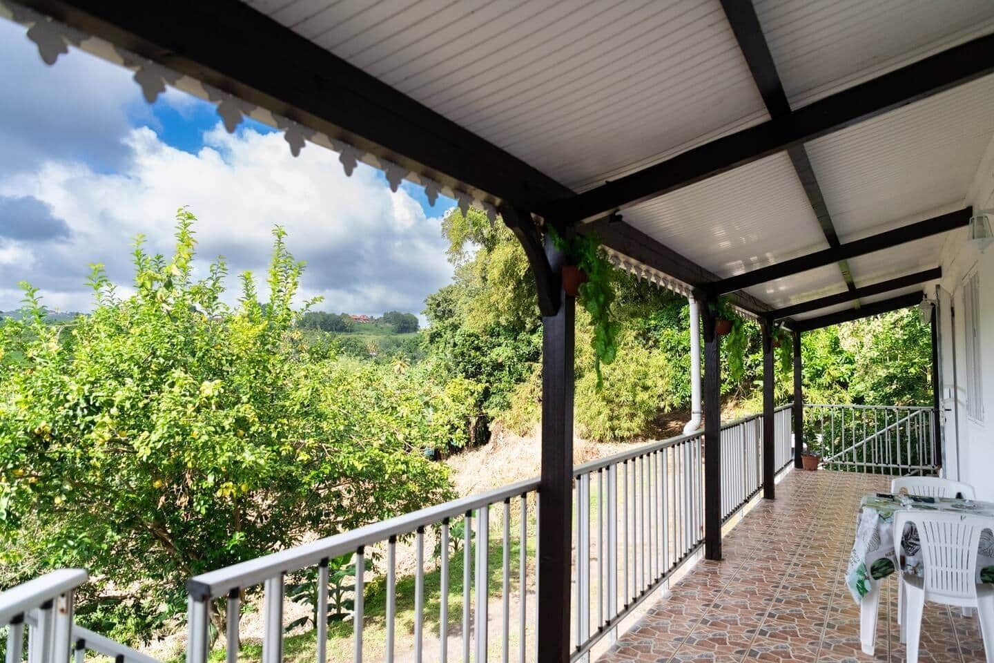 Quiet bungalow surrounded by greenery with sea view and view of Mont Pelée.