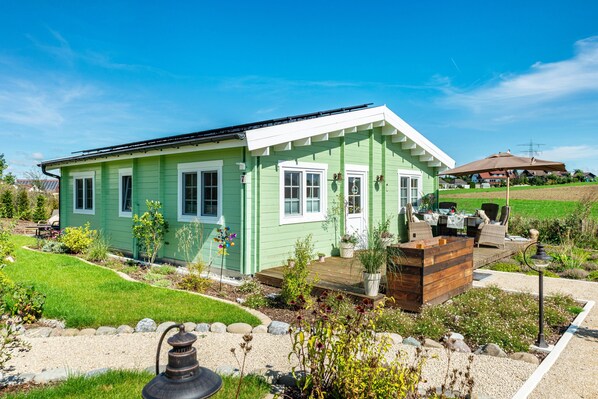 Our lovingly furnished wooden chalet, Finia, is located in a peaceful, natural setting in a small district of Sauldorf, right by a stream. It’s the perfect base for trips to Lake Constance, the Danube Valley, the Swabian Jura, the Black Forest, or Switzerland.