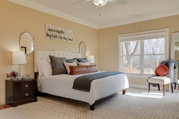 • Bedroom 1 (Main Level Master) – King bed, private full ensuite with walk-in shower, closet with Pack-n-Play
