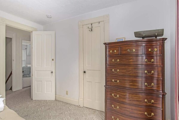 This 4 bedroom, 2 full bath vacation rental sleeps up to twelve in beds.  All bedrooms are on the 2nd floor so late night games or movies won't disturb to early-to-bed gang. Spacious kitchen, and dining room with decorative fireplace.