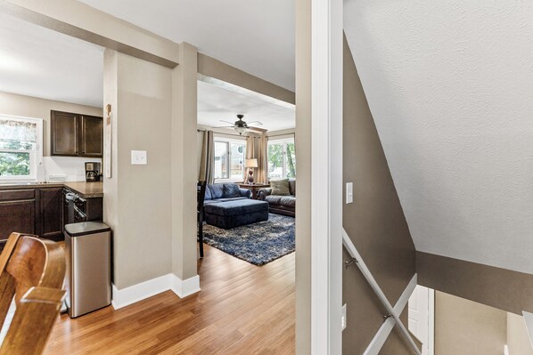 The place was VERY clean and updated. Plenty of space to congregate and hang out. We spent a lot of time playing board games at the outdoor patio tables. Loved going to the beach on Lake Michigan. Also enjoyed the free summer concert series on the river. One thing to keep in mind- there's a lot of steps. There is 1 bedroom on the same level as a bathroom. The other bedrooms are upstairs with no bathroom on that floor. Our group didn't have an issue with this, but I can see others who have trouble climbing stairs running into problems.