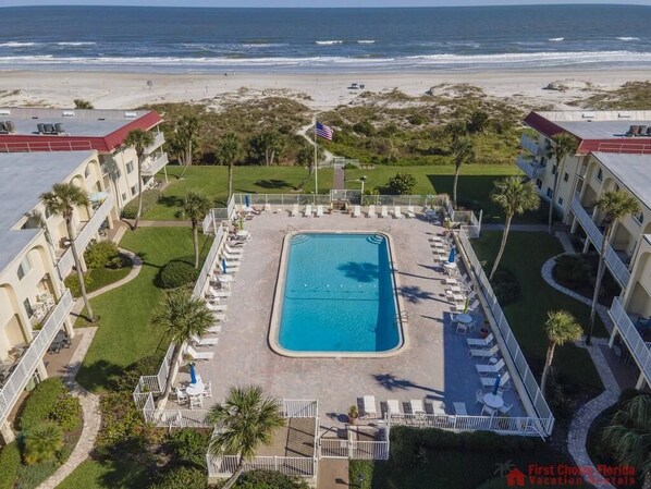 From your townhome, you’re less than 100 steps to the ocean, with the pool in between. There are beach area showers, so you can spray off that excess sugar sand on your way back into your townhome.
