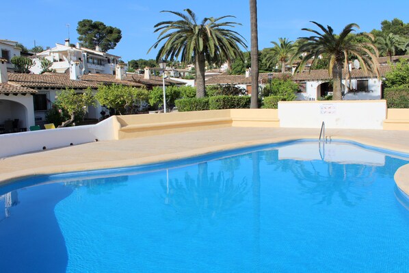 The gardens are stunning and very well maintained, with mature palm trees, fruit trees, and established flowers, bushes, a truly beautiful place to sit and relax in the sun, or shade, and enjoy a drink or eating Al Fresco, on the sunbeds, or at the outdoor table and chairs.