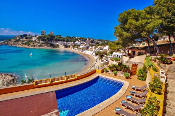 Villa El Portet is a beautiful, Spanish-style finca nestled directly on the famous El Portet beach in Moraira. With its superb location, the villa offers an unparalleled experience with private access to the crystal-clear waters and a serene atmosphere. You're just steps away from several excellent restaurants and a variety of water sports. Despite its secluded feel, you’ll find a pharmacy and a small supermarket just 500 meters away. For those who want to explore more, the bustling center of Moraira, with its wide variety of shops, restaurants, and a yacht club, is a quick 2.5 km drive away. This unique setting, with its incredible views of the sea, the Mediterranean coastline, and the mountains, makes for an unforgettable vacation.