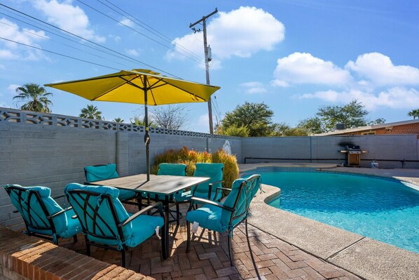 Need to balance work and play? The dedicated office space makes it easy to stay connected, while the in-home washer and dryer keep life hassle-free. Step outside to your own private oasis: a refreshing pool, a fully equipped BBQ area, and a cozy firepit for starlit evenings. (Please note: the pool is NOT heated.)