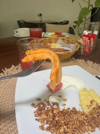 Another issue was that one of the staff members started cleaning around 10:30, even though breakfast is served until 11:00. The cleaning products had a very strong chemical smell, and one day it even caused an allergic reaction for me.