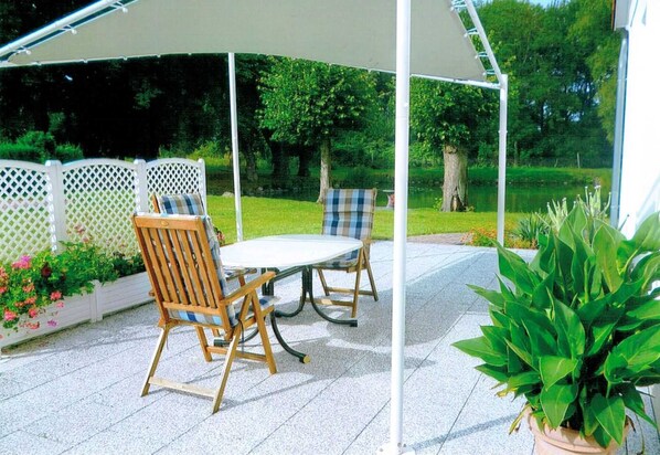The apartment is located in the house of the landlord and has a separate entrance. The house is located on the extensive property on the house pond.