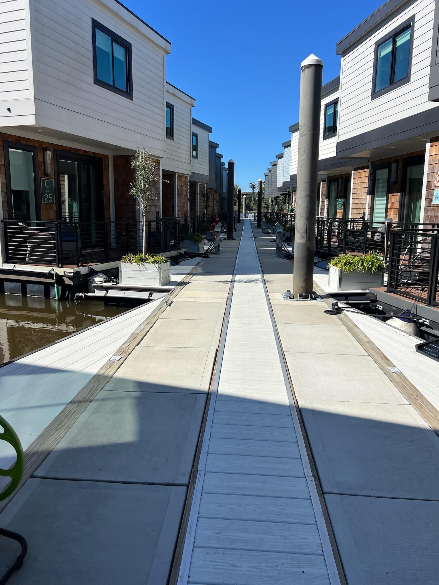 The Cove is located in Port City Marina (PCM), a top-tier, gated, full-service marina offering over 200 cutting-edge floating concrete wet slips. Situated on the picturesque Cape Fear River, PCM is a haven for both transient boaters and our esteemed residents enjoying the luxury of our permanent floating villas.