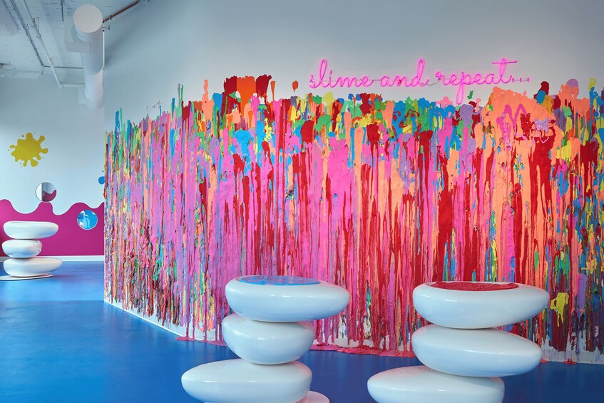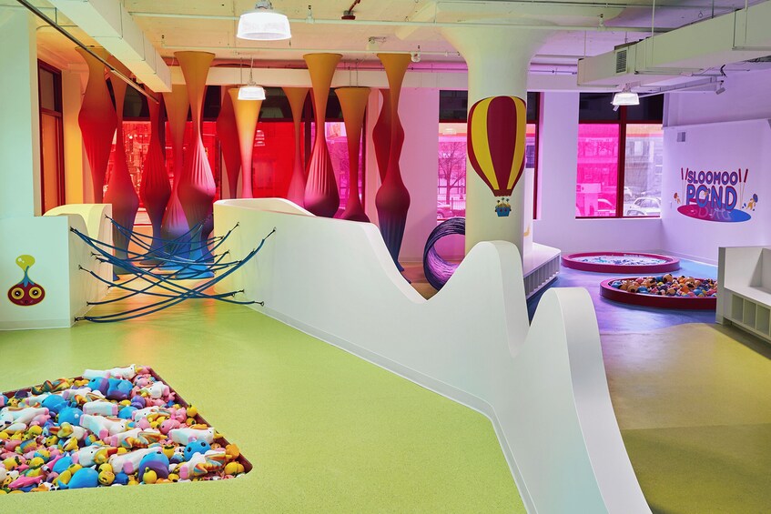 Durante tu visita, interactúa con los numerosos personajes del Sloomooverso, descubre tu propio “nombre baboso” y aprende datos babosos que están repartidos por las paredes. Tómate un tiempo y relájate en la estación de sonido ASMR. El colofón a tu visita a la exclusiva tienda temática de limos de Sloomoo.