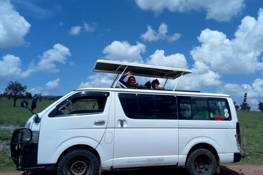 Vehículo de techo emergente: Para la unidad de juego en el parque, estamos utilizando un vehículo de safari personalizado con un techo emergente para facilitar la visualización del juego.