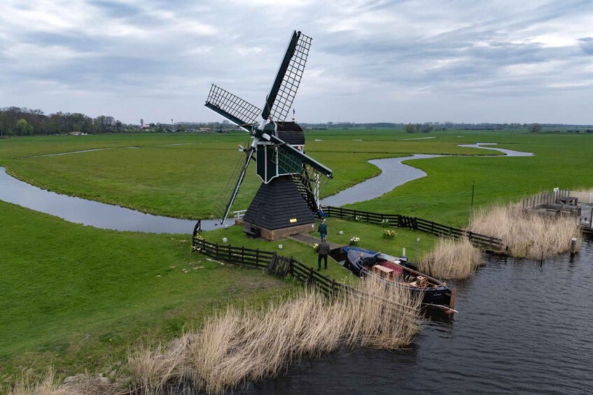 Nuestra excursión incluye un crucero de 60 minutos por los molinos de viento. Empezamos con el crucero de los molinos de viento en Warmond, uno de los lugares más bajos de Holanda (5 metros por debajo del nivel del mar). Descubre las tierras bajas de Holanda. Los holandeses crearon por sí mismos cerca del 60% de Holanda. Nuestro recorrido desde Ámsterdam te lleva a las partes más bajas de nuestro país, Verás molinos de viento en funcionamiento durante nuestro singular crucero por los molinos. Los molinos de viento siguen funcionando para que los holandeses y tú tengáis los pies secos.