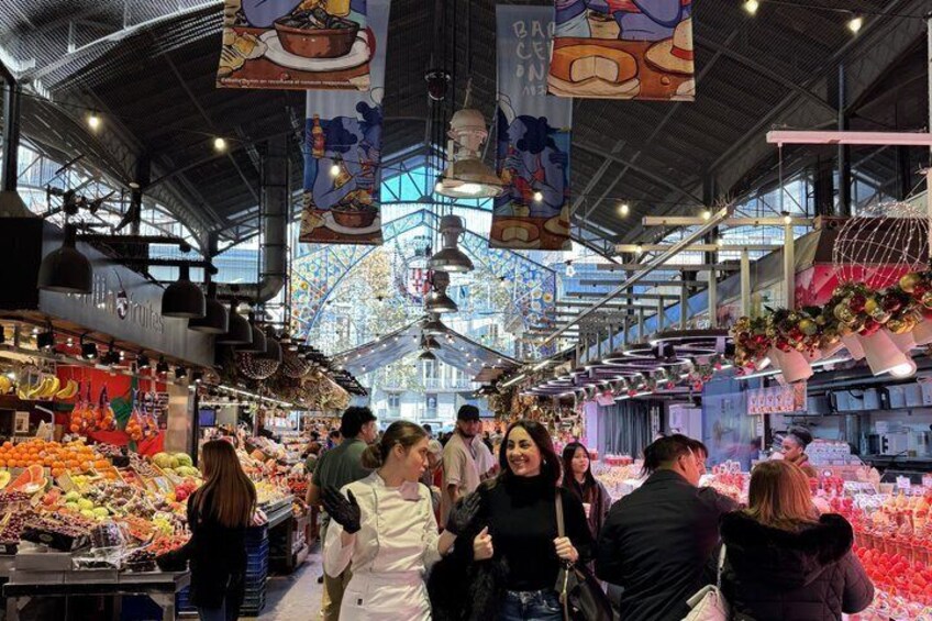 Tour por el mercado de Boqueria: Escoge a mano ingredientes frescos con tu chef (¡mariscos, azafrán, verduras!)