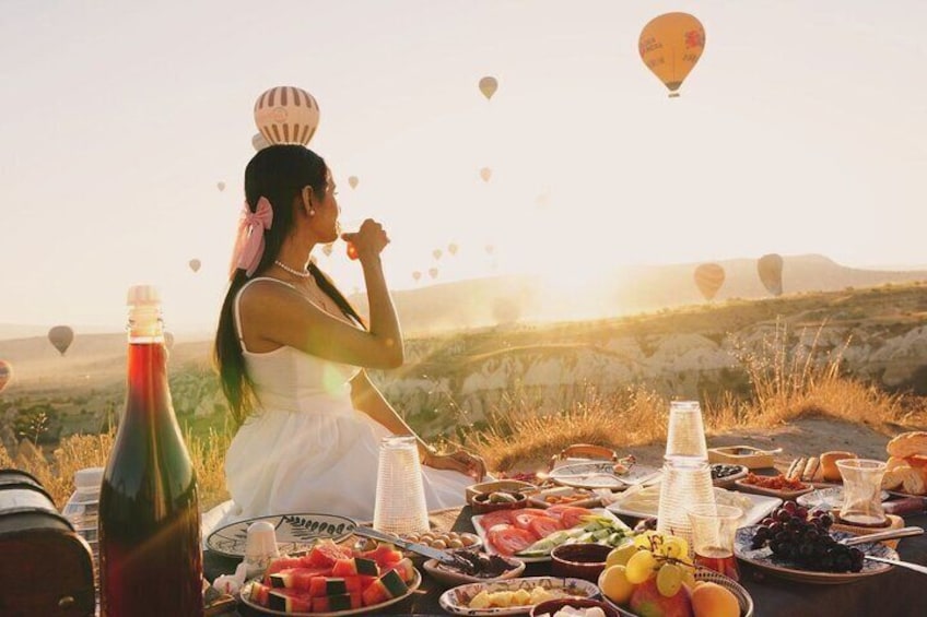 También puede considerar nuestras opciones de Cena y Desayuno preparadas solo para usted en las mismas circunstancias en Capadocia. Mientras tengas tu comida, los globos aerostáticos te acompañarán. ¿No te parece una experiencia única en la vida?