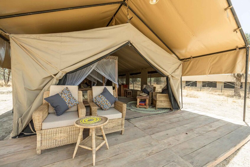 Tras tu safari de un día entero, pasarás la noche en Africa Safari Lake Manyara, un alojamiento situado justo al lado del lago Manyara. A menudo se ven animales salvajes como cebras y ñus pastando en la hierba del campamento.