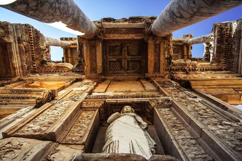 Excursión a Éfeso: La antigua ciudad de Éfeso constituye una de las atracciones más importantes y populares de Turquía. Alberga varios monumentos importantes de las épocas helenística y romana. Estos monumentos incluyen, entre otros, el Templo de Adriano, la Biblioteca de Celsio, el Gran Teatro, las Termas Romanas, el Ágora y la Latrina. En Éfeso se encuentra también el tristemente célebre Templo de Artemisa. Mientras recorres la ciudad antigua, el guía te proporcionará información importante sobre cada monumento.