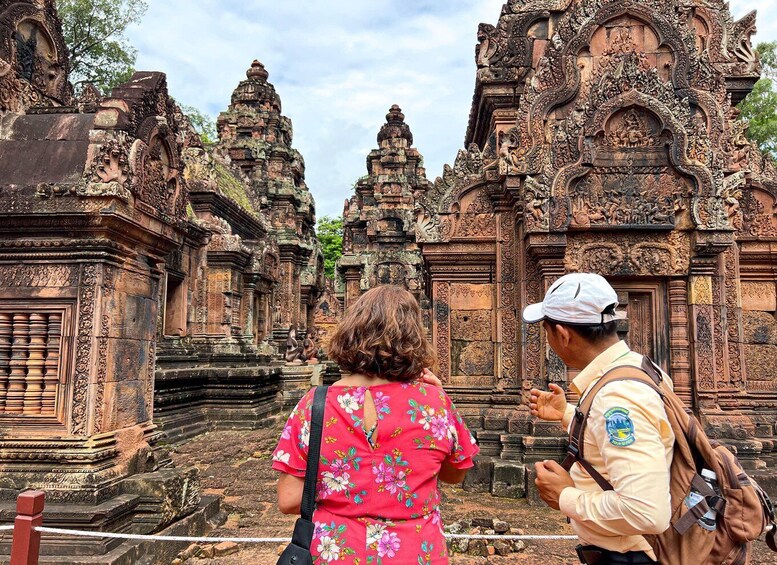Únete a nuestra completa visita guiada y conoce el rico patrimonio cultural y la belleza natural de Camboya mientras disfrutas de un delicioso picnic en medio de pintorescos paisajes.