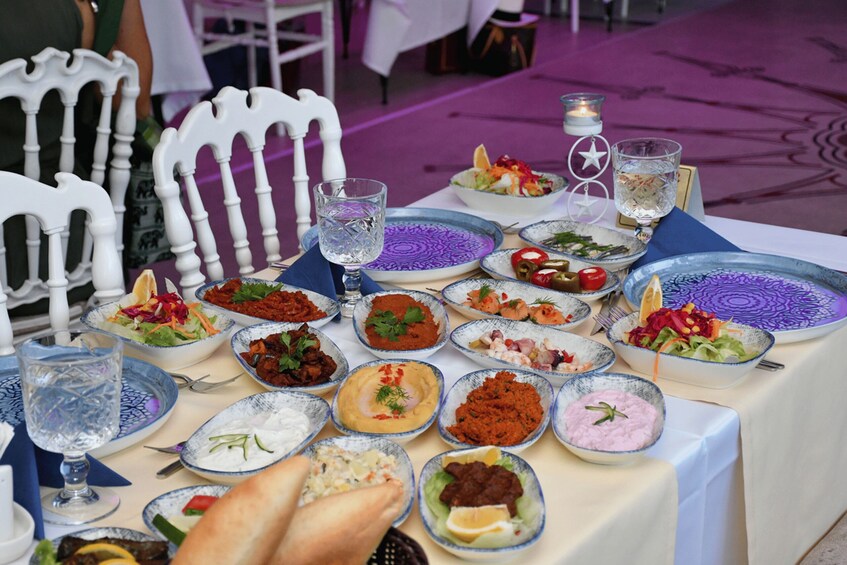 Disfruta de una cena crucero por el Bósforo en una mesa privada con refrescos ilimitados y bebidas ilimitadas (limitadas a bebidas alcohólicas locales: vino, cerveza, rakı, vodka o ginebra). Se aplican cargos adicionales por bebidas alcohólicas adicionales. El traslado al hotel no está incluido.