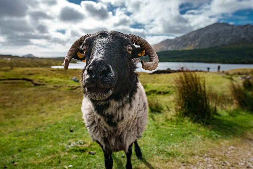 Sé testigo de una apreciada tradición irlandesa mientras visitamos una tradicional granja de ovejas de Connemara. Bajo la hábil dirección de Joe, experimenta la extraordinaria Demostración del Perro Pastor, un verdadero espectáculo de inteligencia canina. Observa cómo unos border collies altamente adiestrados pastorean sin esfuerzo ovejas de Connemara de cara negra, mostrando el antiguo vínculo entre pastor y perro. Relaciónate con los simpáticos animales -puede que incluso consigas abrazar a cachorros de perro pastor o sostener un corderito, dependiendo de la época del año- mientras te adentras en la cultura y el patrimonio de Connemara.
