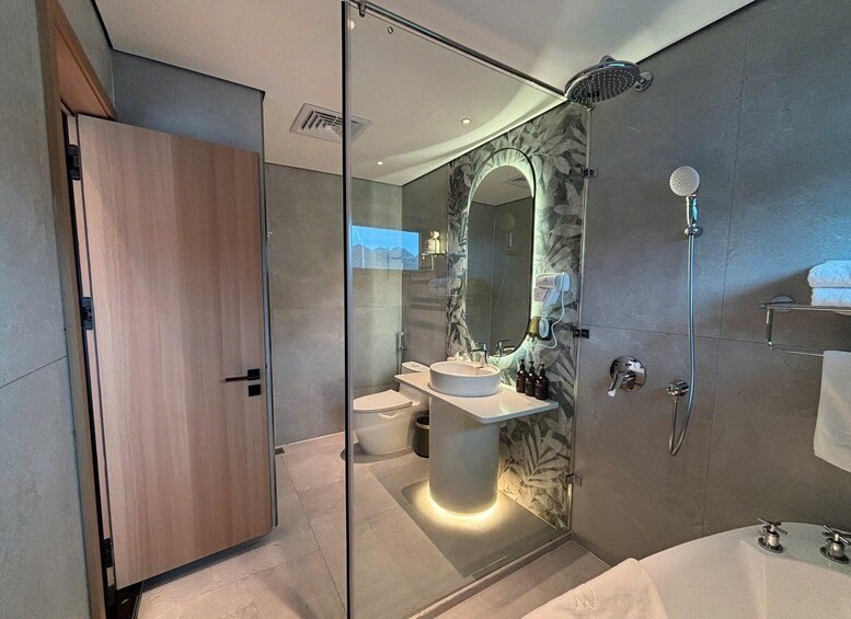 Esta preciosa habitación con vistas al mar dispone de balcón privado y bañera.