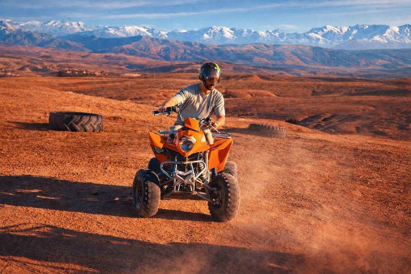 Al llegar a Agafay, disfrutarás de una excursión en quad por los escarpados paisajes del desierto. (Aproximadamente 1 hora).