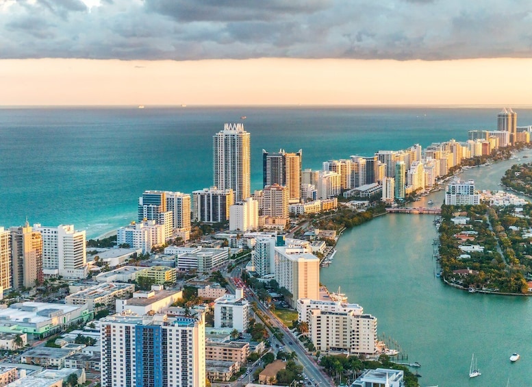 El recorregut conclou amb unes vistes impressionants del centre de Miami i de l'animat districte financer de Brickell, on l'horitzó modern de la ciutat es troba amb l'encant històric, tot brillant sota la mostra final de la posta de sol. Torna a l'aeroport executiu de Miami amb records d'un cel pintat amb la paleta d'una posta de sol inoblidable de Miami.