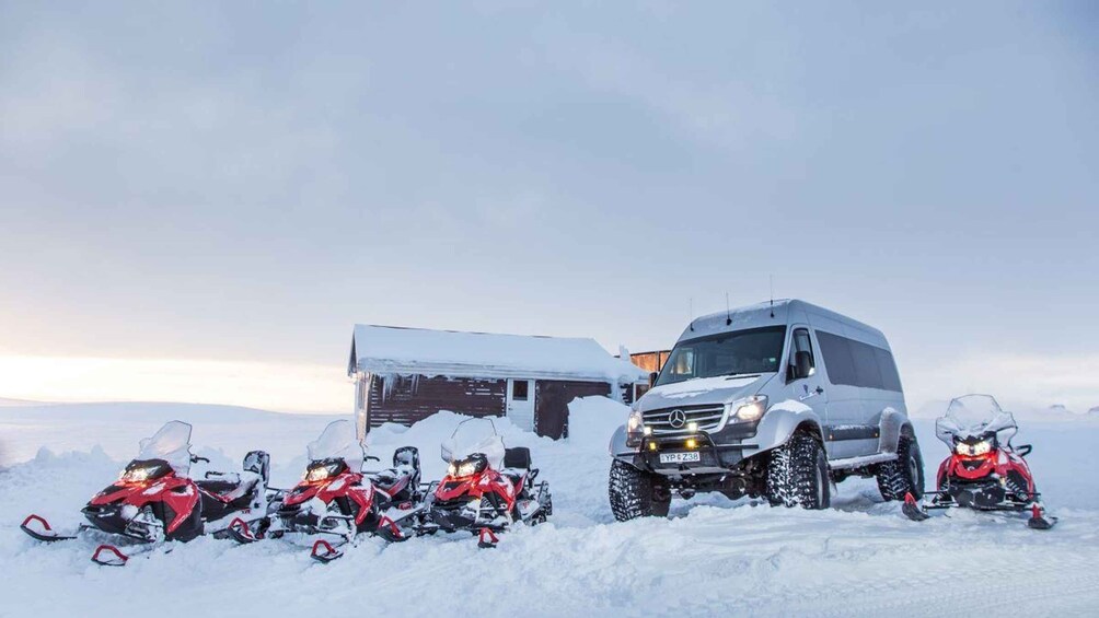 Reikiavik: Excursión en moto de nieve por el glaciar Langjökull con cueva de hielo