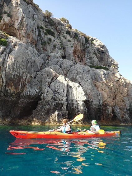 Dirígete a la playa de Kathara, donde comienza tu actividad. Desde allí, rema por las solitarias playas de la isla y las espectaculares formaciones rocosas que contribuyen al color verde esmeralda de las aguas que te rodean.