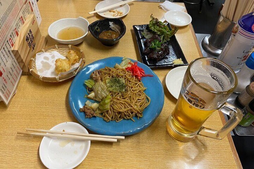 Tour gastronómico nocturno en Shinsekai con un guía local