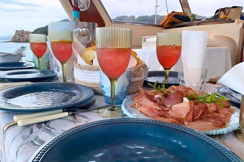 - El almuerzo se servirá a bordo e incluirá: diferentes aperitivos que varían diariamente, un plato principal a base de pescado según la disponibilidad del día, bebidas, café y licores