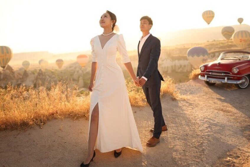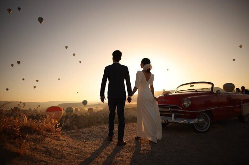 Tour privado en auto antiguo en Capadocia con vista en globo
