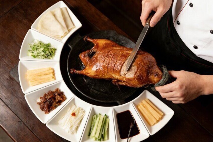 Esta opción incluye un recorrido turístico nocturno y una cena en el restaurante local, ya sea para comer pato pekín, estofado, dim sum, etc.